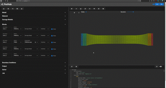 PeriHub ist eine Plattform für die numerische Implementierung der Peridynamik (nichtlokale Formulierung der Kontinuumsmechanik) und ist eine Erweiterung der Open Source Software Peridigm. Funktionalitäten der Software werden durch einfache hinterlegte Modelle gezeigt, eigene Modelle sind zusätzlich einlesbar und rechenbar.