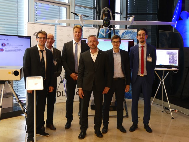 von links: Dr. Christoph Kölbl (DLR-TP), Dr. Frank Duschek (DLR-TP), Dr. Steven Bayer (DLR-OS), Dr. Martin Hellmann (DLR Programmkoordination Sicherheit), Stefan Kern (DLR-FL.), Thomas Kraft (DLR-OS)