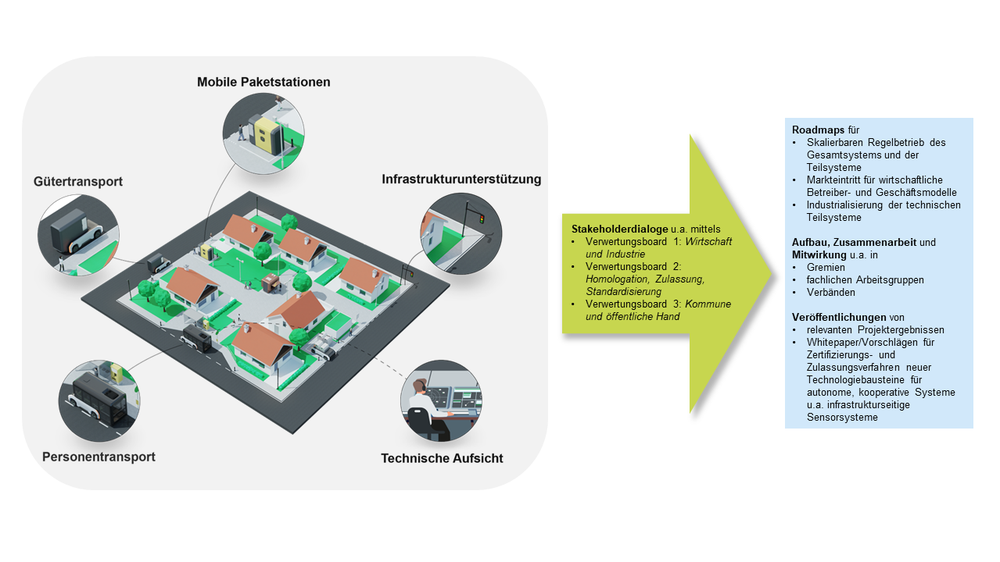 Ein zentrales Anliegen des Projekts ist es, nicht nur technische Innovationen zu entwickeln, sondern diese auch dauerhaft nutzbar zu machen. Dafür werden drei sogenannte Verwertungsboards eingerichtet: begleitende Gremien, die das Projektkonsortium fachlich beraten, wichtige Beteiligte frühzeitig einbinden und dafür sorgen, dass die Ergebnisse den Weg in einen den Regelbetrieb finden können.