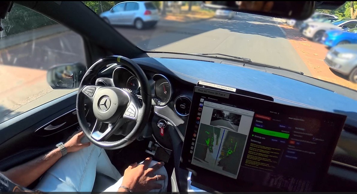 Erste Erprobung und öffentliche Demonstration der Automation mit konventionellen Fahrzeug und Sicherheitsfahrer von Motor Ai unter Normalbedingungen im öffentlichen Straßenverkehr am Schwarzen Berg.
