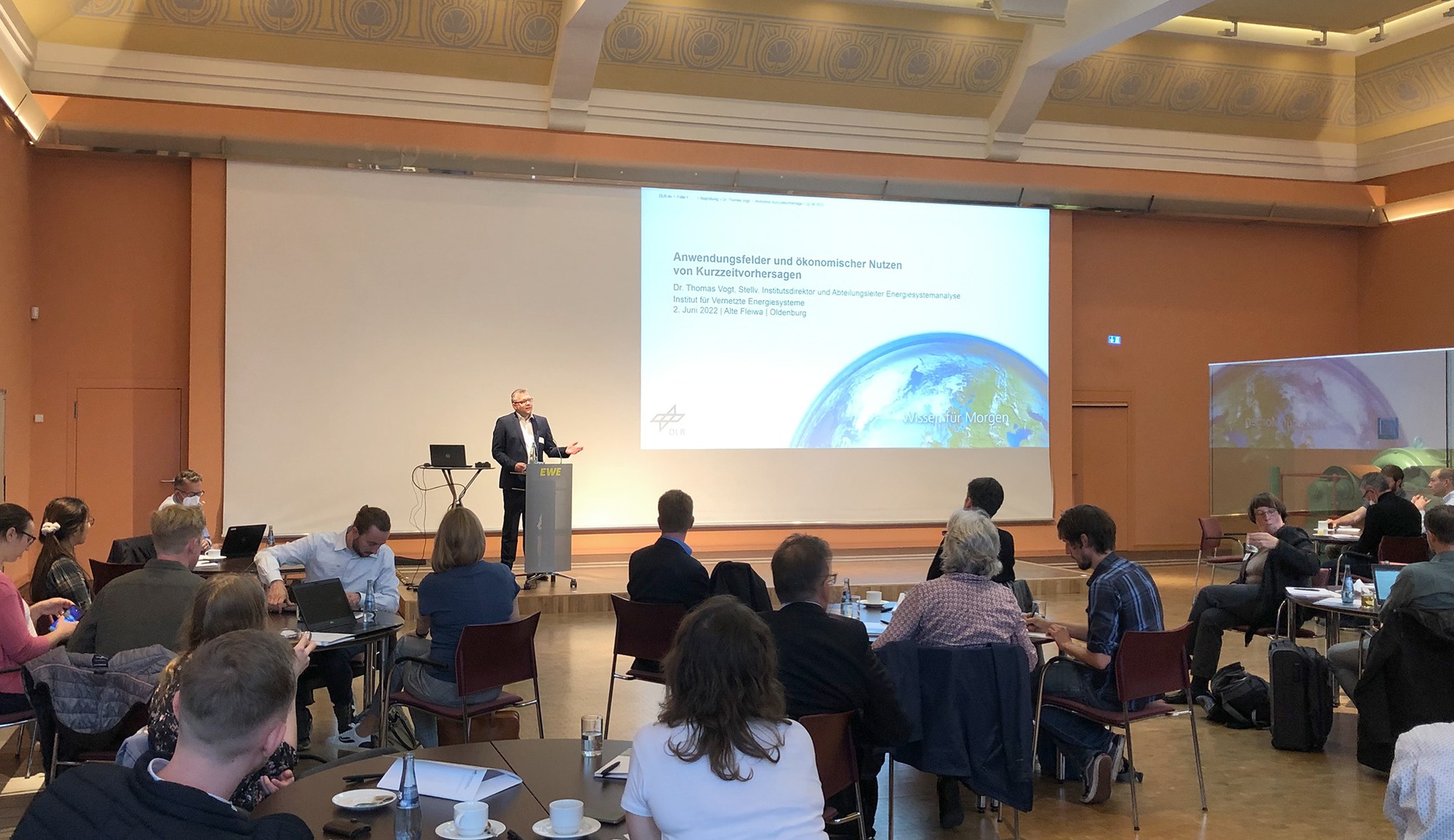 Im DLR kam es ab dem Jahr 2017 zur Bündelung vorhandener Ressourcen aus dem Deutschen Fernerkundungsdatenzentrum (DFD) und der Universität Oldenburg in der neuen Forschungsgruppe Energiemeteorologie am Institut für Vernetzte Energiesysteme. Durch Veranstaltungsformaten wie den DLR-Workshop „Anwendungsfelder und ökonomischer Nutzen von Kurzzeitvorhersagen“ im Juni 2022 vertiefen die Forschenden den fachlichen Austausch zum Beispiel mit Energiehandel, Anlagen- und Netzbetreibern und Vorhersageanbietern.