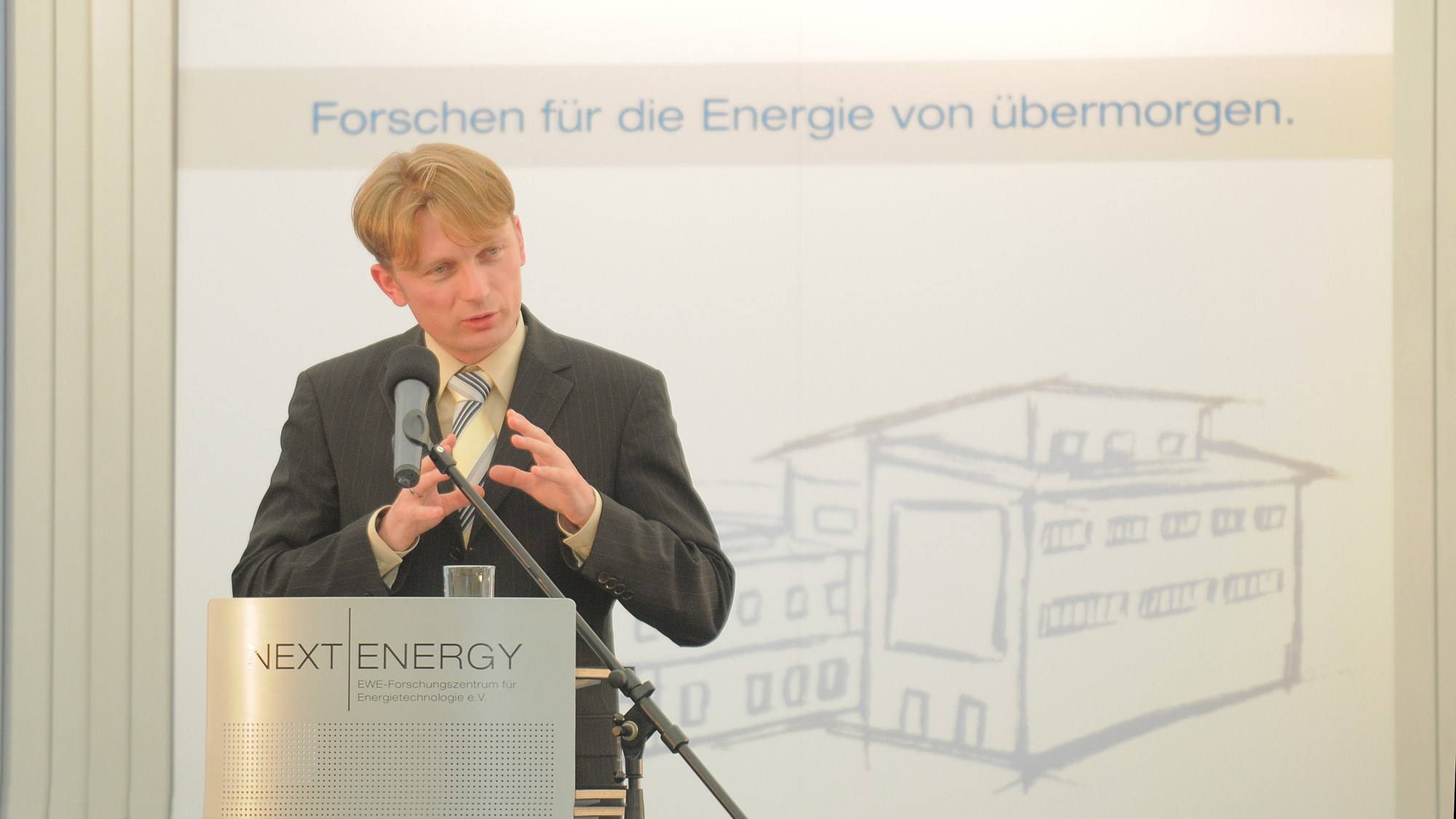 „Forschen für die Energie von übermorgen“: Rund um die Kernthemen Energieeffizienz, Energieeinsparung und erneuerbare Energien hat Gründungsdirektor Prof. Dr. Carsten Agert im Jahr 2009 das Forschungsportfolio des „EWE-Forschungszentrums für Energietechnologie NEXT ENERGY“ präsentiert.