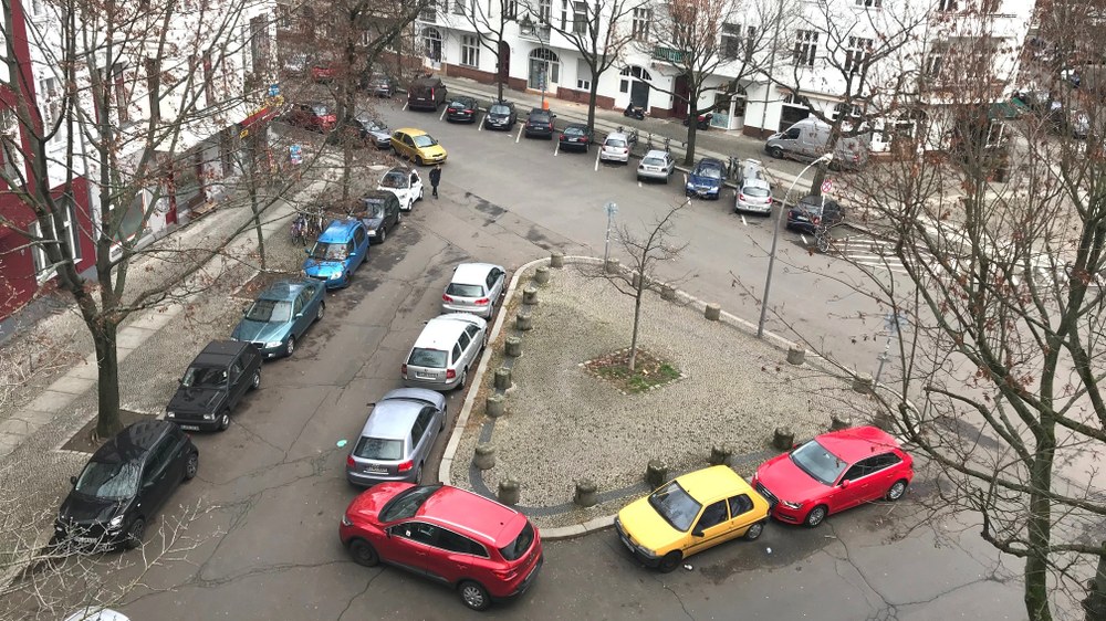 In Deutschland nehmen Autos aktuell viel Platz im öffentlichen Raum ein, erheblich mehr als Fahrzeuge des öffentlichen Verkehrs oder Fahrräder. In Berlin beispielsweise entfallen 58% der Verkehrsflächen auf den fahrenden und parkenden Pkw-Verkehr (Agentur für clevere Städte 2014 ). Dabei werden Pkws im Durchschnitt ganze 23 Stunden am Tag nur geparkt und dominieren – ob fahrend oder stehend – häufig das Straßenbild, wie auch hier an der Berliner Kreuzung Wundtstraße/ Horstweg.