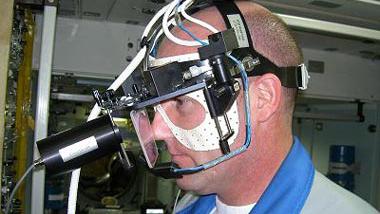 astrolab_lebenswissenschaften2.jpg/ André Kuipers trainiert mit dem Eye Tracking Device