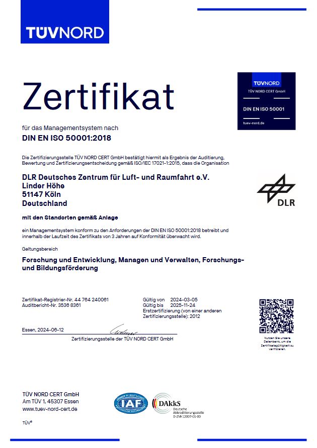 Vorschaubild: Zertifikat DLR-Managementsystem ISO 50001
