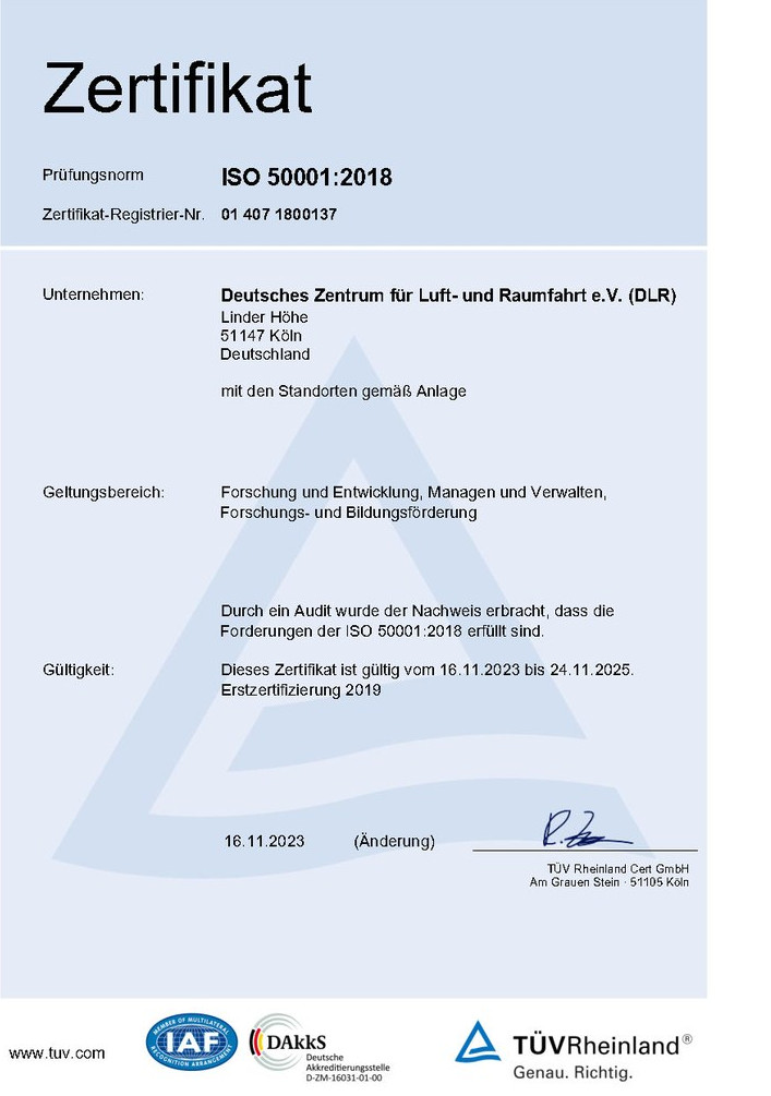 Vorschaubild Zertifikat ISO 50001:2018 (Gültigkeitszeitraum Nov. 2023 bis Nov. 2025)