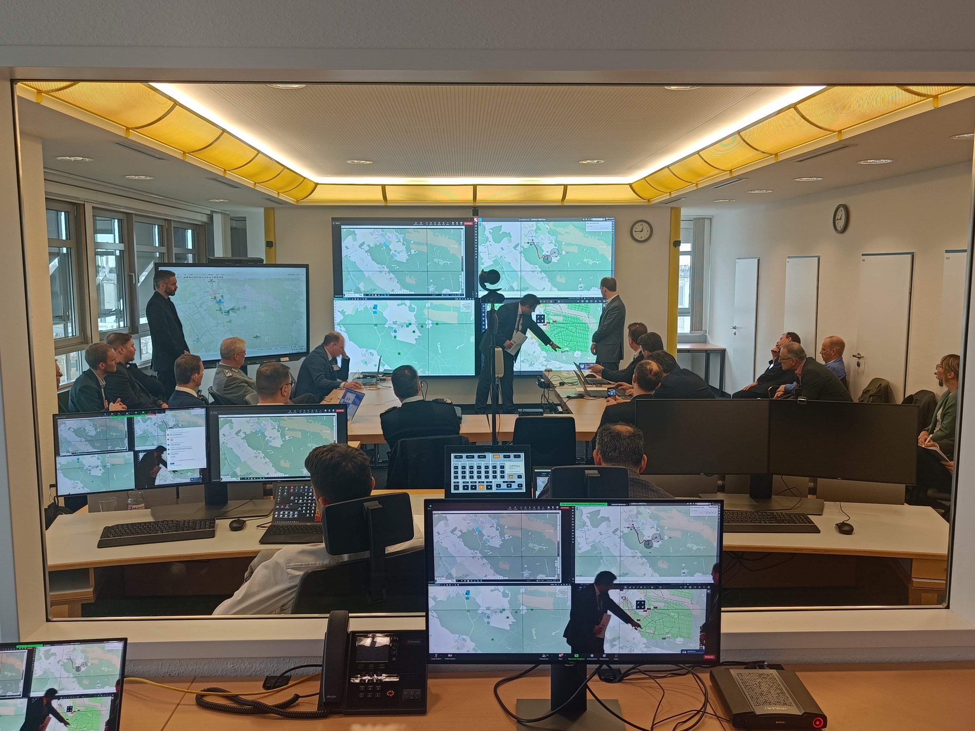 Der Lageraum bietet allen OPTSAL-Partnern eine vertraute und einsatzrealistische Umgebung für die Stabsarbeit und Einsatzführung mit einfachem Zugriff auf etablierte Lagebild- und Führungsinformationssysteme.
