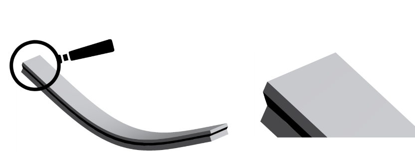 Right: Illustration of the occurring shear deformation in the black elastomeric layer. This deformation type is decisive for the vibration damping, since it “activates” the damping potential of the elastomer.