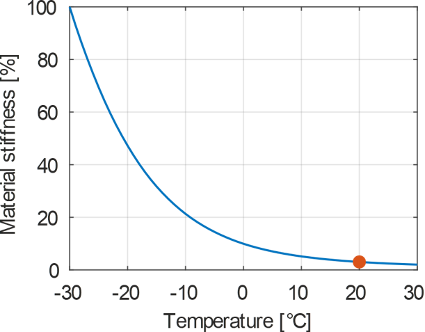 Elastomeres - Changes of the material stiffness depending on temperature variation