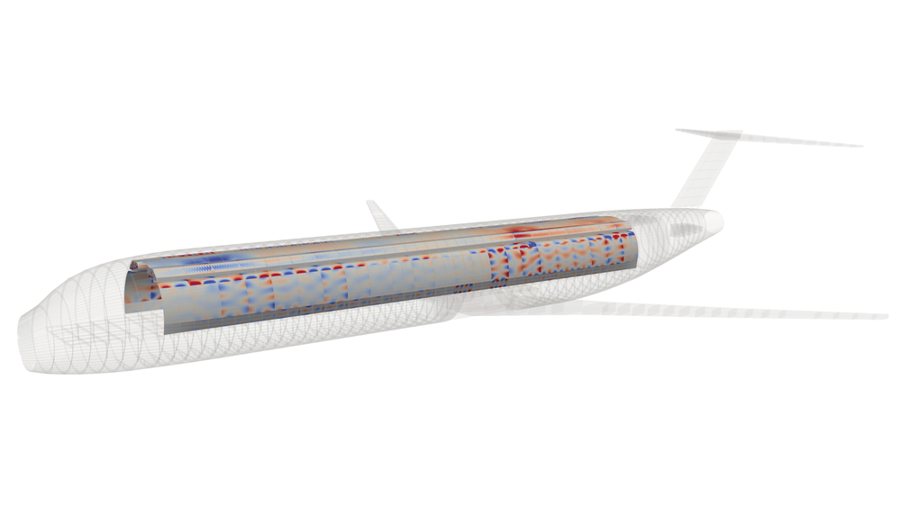 At the same time, acoustic sources such as buzz-saw noise from fans and engine-induced vibrations were modeled in more detail. The structure of the aircraft fuselage and the cabin interior were modeled for the first time in high-resolution simulation models in order to realistically capture their role in sound transmission in the acoustic frequency range.