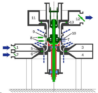 Compared to more complex test facilities with rotating blade rows, the special feature of the RPG is the stationary test model (annular cascade): The rotation of the test model is replaced by a pre-swirl in the inflow so that the flow conditions are almost the same as in a typical axial turbomachine (no centrigual loads). Without the rotation, the blades can be equipped more extensively with measurement sensors and the data acquisition is eased. This improves the data resolution as well as the data quality.