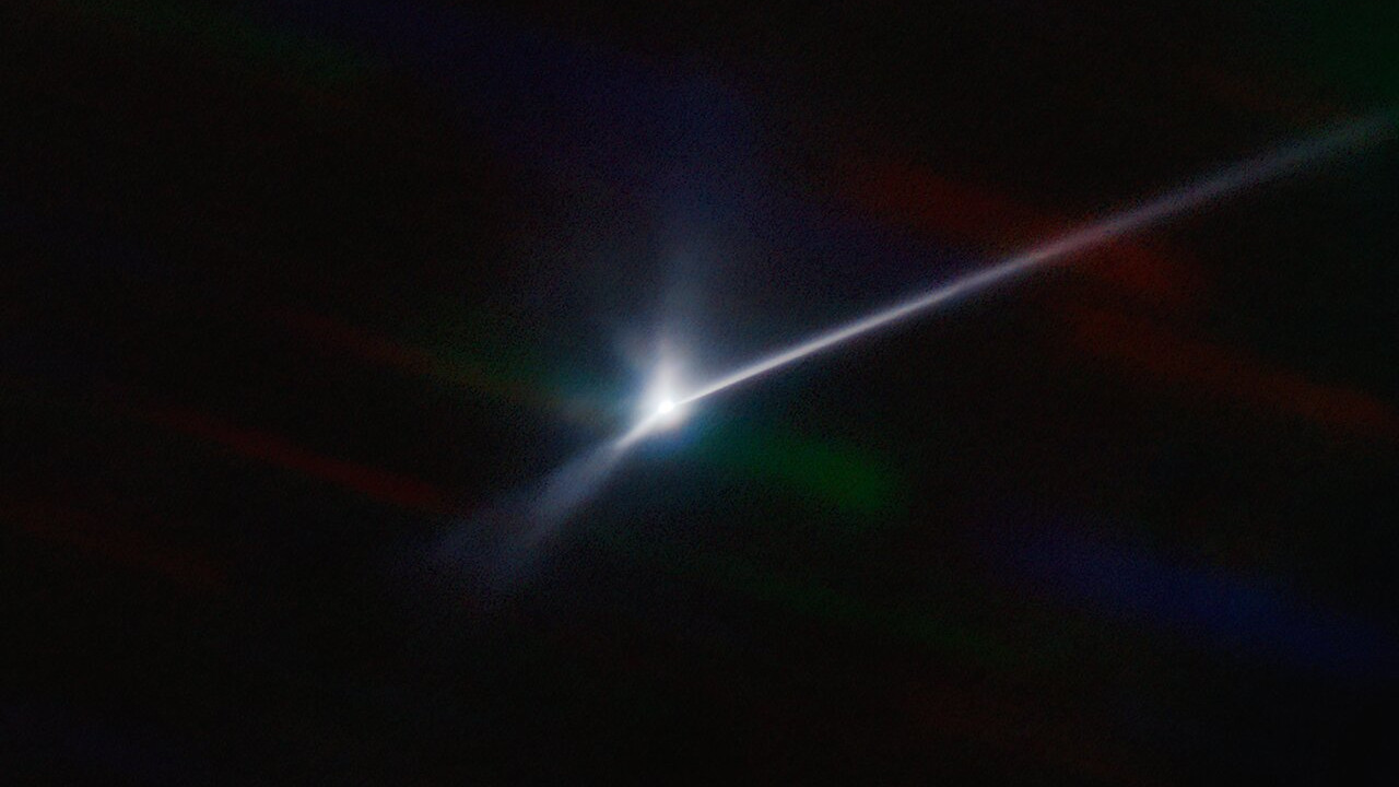 This image shows the over 10,000-kilometre-long dust plume caused by the controlled collision of NASA's DART space probe with the asteroid Dimorphos on 26 September 2022. The image was acquired using the Southern Astrophysical Research Telescope (SOAR) in Chile.