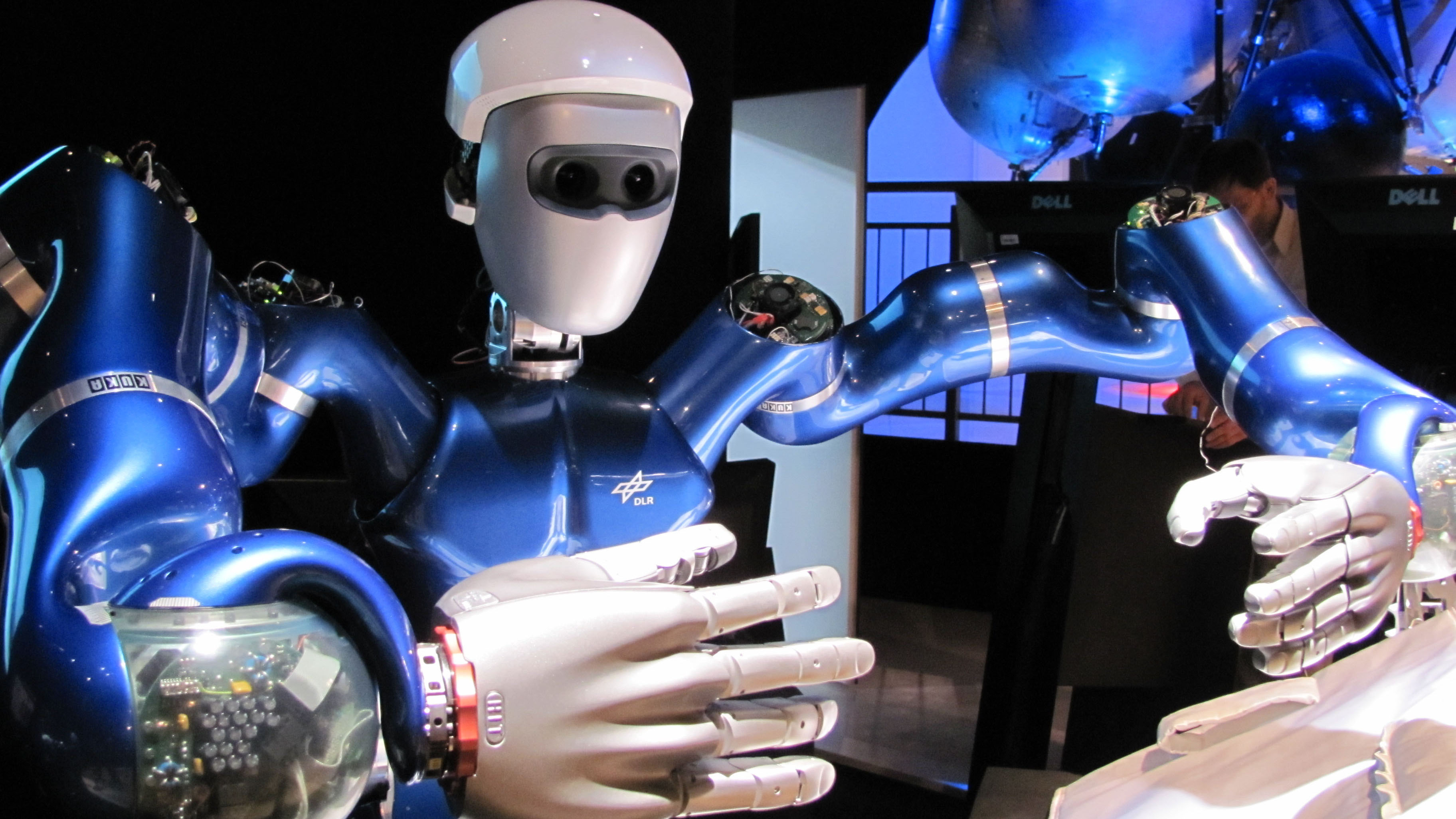 The two-armed robot torso ‘JUSTIN’ from the DLR Institute of Robotics and Mechatronics is setting a new benchmark in humanoid robotics.