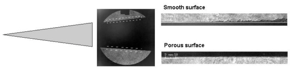 Figure 1 shows the first practical result on this working field: A wind tunnel experiment of a 5° sharp cone of Rasheed [2]. The figure in the top on the right side shows transition over a smooth wall while over a porous surface a laminar flow can be seen (right side).