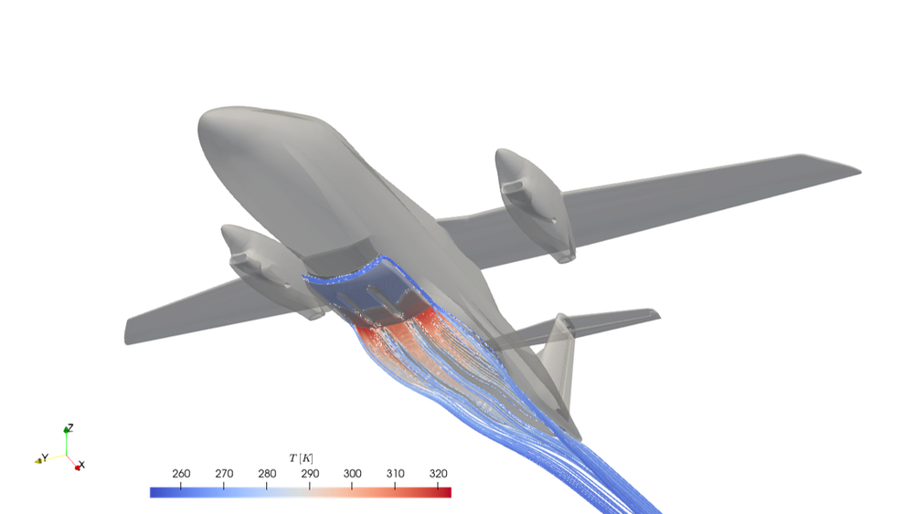 The innovative architecture with a megawatt-class fuel cell in the aircraft fuselage also presents a challenge in terms of aerodynamic integration due to the required cooling capacity. A system of cooling air inlets, heat exchangers and cladding elements is necessary, capable of dissipating heat while generating minimal additional air resistance.