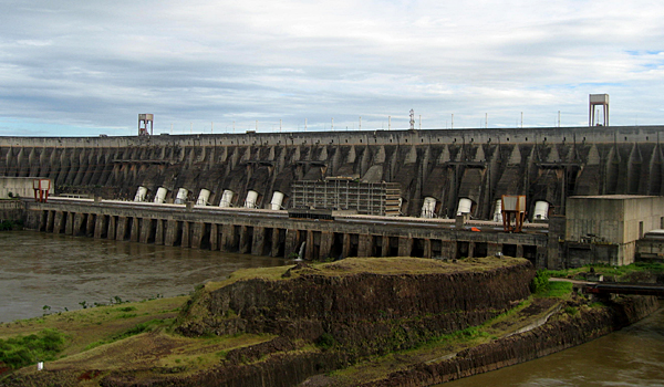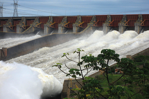 The overflow ramp on the world’s second-largest power station, Itaipu, on the border between Brazil and Paraguay, with a capacity of 14,000 megawatts generated from 20 turbines. Credit: Jan Oliver Löfken. Jan Oliver.