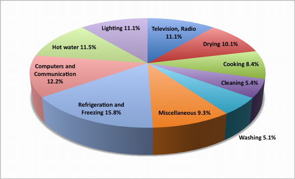 Breakdown of electrical energy consumption in Germany’s private households (2006). Source: Energy Agency NRW. Credit: Markus Schweiss.