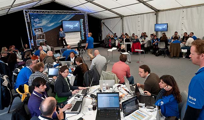 My ESA colleague Andreas Schepers and I had jointly planned and organised the programme for this (update from 5.1.12) SpaceTweetup together, so, for me, alongside the success of the Raumzeit podcasts, this was one of the highlights of 2011 that I wanted to reflect on again today (even though we have already made a few comments on the SpaceTweetup in this blog). The idea of using a tweetup as a new genre of social media communication comes from NASA. Veronica McGregor held the first NASA Tweetup in January 2009. Since then, NASA has regularly staged tweetups, especially for mission launches. My boss Marco Trovatello agreed with our ESA colleagues (Fulvio Drigani, Erica Rolfe, Maria Bennett, Daniel Scuka, update from 5.1.12), to hold the first SpaceTweetup in Europe on our Open Day – the first tweetup ever for this type of event in Europe as far as we know. Marco Trovatello had already written about our interest in tweetups as a communications strategy in this blog (update from 5.1.12).