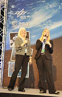 Above: autograph for the youngest SpaceTweetup guest. Below, right: Beth Beck and Stephanie Schierholz discuss social media communication at NASA. (Credit: ESA)