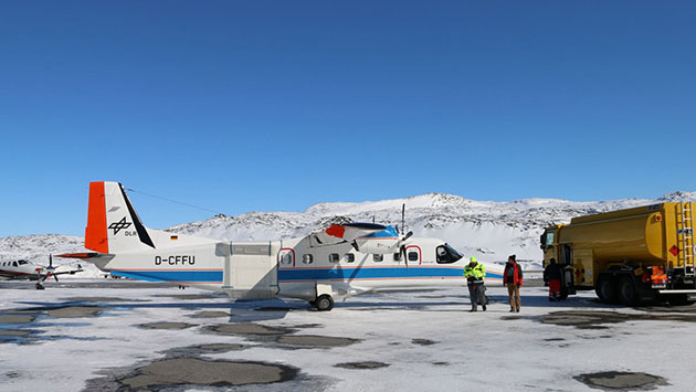 DLR's Do-228 airplane, with the F-SAR system on board arrived on Friday, 24 May, in Kangerlussuaq. On the following Monday, the team consisting of two pilots, one flight engineer and two radar operators took off for the first calibration flight. In the first two weeks, the antenna configuration for the X-, C-, S- and L-band frequencies was installed on the plane. This range of different frequencies will allow us to compare radar acquisitions with different penetration depths into the snow and ice. The team acquired SAR data over all the test sites where we had installed corner reflectors. Additionally, the area around the airport and town of Kangerlussuaq is overflown for calibration purposes and is well equipped with seven reflectors. It seems like the locals got used to these strange metallic artefacts in their town pretty fast.