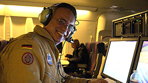 During the night, I had the chance to talk with the pilots and the flight engineer. They all agreed that the aircraft 'feels' altogether better. During my chat with the flight engineer, I discovered that he is now able to control the ventilation and air conditioning. Prior to the refurbishment in Hamburg, the cabin temperature required constant adjustment. The overhaul involved replacing almost all of the ventilation ducts – even the installation of new lines and sensors in the rear section of the cabin (around the telescope). Now, the flight engineer is able to regulate cabin temperature in such a way that it does not require adjusting every few minutes.