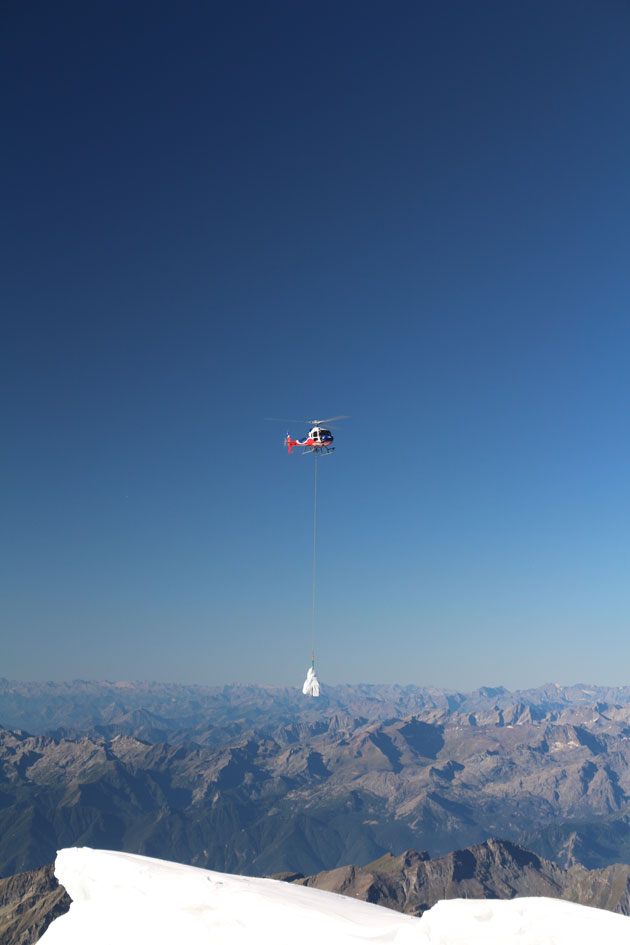 The Regina Margherita Hut sits atop a rocky crag in the Valais Alps. It is right on a precipice on the Italian side and just 30 metres from the Swiss border. At 4554 metres above sea level, it is the highest building in Europe. The Zugspitze, the highest mountain in Germany, is just 2962 metres high. The DLR team has turned a four-bed room in the hut into a laboratory; they sleep – or, depending on the level of altitude sickness, lie awake – in bunk beds in a ten-bed room. Six hundred kilograms of equipment were flown by helicopter to the top on Tuesday morning. Five hundred kilograms of the equipment include the freezer in which blood, urine and saliva samples are preserved until they can be analysed at the DLR site in Cologne and all the individual sample containers, in addition to blood sampling equipment and 50 kilograms of dry ice for keeping it all cold. Also included are 10 kilograms of personal luggage for each of the test subjects, who will have to do without a few amenities for the duration of the test – running water in the hut, separate rooms, privacy and, to an extent, physical comfort. The helicopter had to fly up to the hut twice before all of the equipment could be unloaded at over 4500 metres.