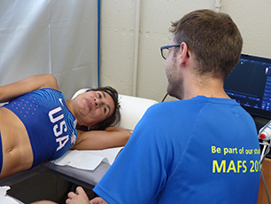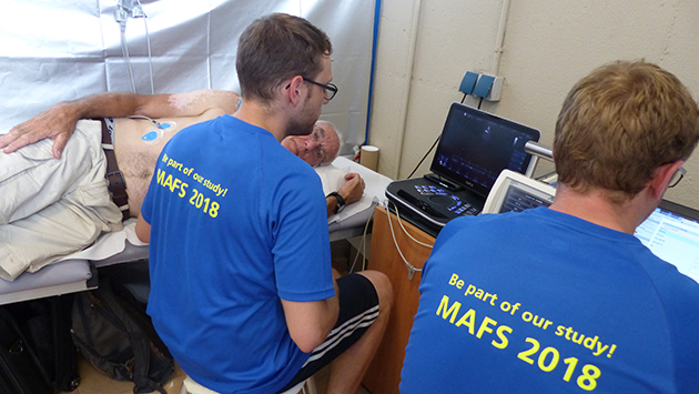 The athletes are delighted when Fabian and Stefan explain to them how their hearts work: "The participants are very thankful for this examination opportunity, as they do not always have the chance to receive this kind of functional analysis. They cooperate willingly and are extremely impressed to see their own hearts live on the display."