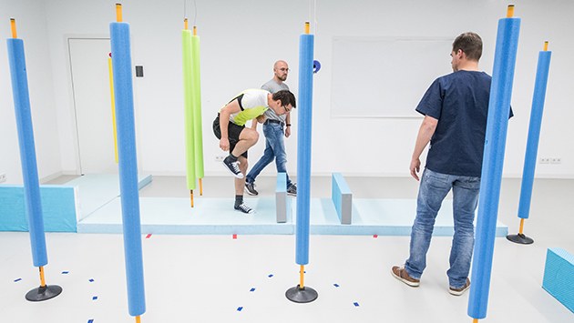 Aching muscles also made an impression on test participant K, who gave an enthusiastic account of the first days after getting up: "Every part of my body hurt, from top to bottom, but it was really good! The day I got up was the best day of my life, I’ve never felt so active! The exercise and sport were liberating; the treadmill where the speed is slowly increased from walking to running, in particular, was extremely good." In the balance test, they had to close their eyes while moving their head and would have almost fallen over if staff hadn’t been there to support them. And in the parkour experiment, where test participants had to complete a slalom course 10 times over that included multiple surface types and several changes in direction, they instantly noticed a lack of muscle strength and shortness of breath. Being tilted upright on the tilt table was also an experience: "My shoulders suddenly became heavy, my head wobbled about without any balance and my shirt was covered in sweat without me having moved. All this simply as a result of my being upright. And walking was also strange on day one: my feet had to first sort themselves out. And when I had to lie down for an experiment, I automatically thought that I would stay lying down and constantly had to be reminded that I could now get up!" The rehabilitation programme was a great experience for them after their bed rest: "You’re really pleased about your aching muscles and it’s great fun. But the first thing I’ll do outside is enjoy the sun and buy a bag of crisps and chocolate!"