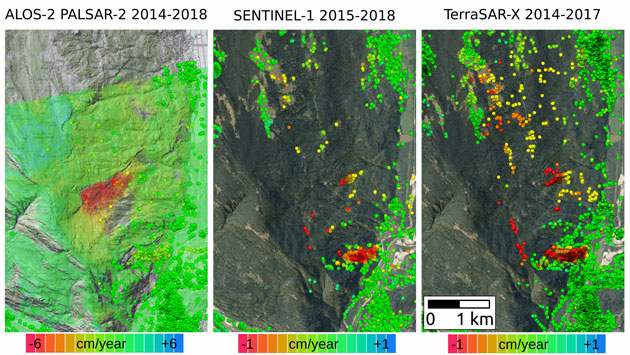 The very high spatial resolution of TerraSAR-X data allows for observing "invisible" or very slow landslides as shown in the latest research by Tazio Strozzi, Rafael Caduff and Andrea Manconi from Gamma Remote Sensing AG and Christian Ambrosi from the University of Applied Sciences and Arts of Southern Switzerland (SUPSI).