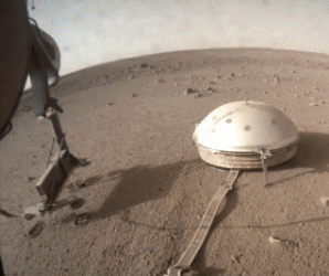 This week the radiometer has observed three passes of Phobos in front of the Sun: Phobos eclipses. The eclipses were pronounced in the radiometer data showing an approximately 1°C dip in temperature through the roughly 30 seconds of duration of the eclipse. The cameras on InSight have also observed the small and brief dip in daylight as can be seen in the animated gif below. The radiometer data will be interpreted in terms of the thermo-physical properties of the top-most layers of the Martian soil. Interpretations of the results are expected by the time of the Lunar and Planetary Science Conference earliest, which is from 18 to 22 of March.