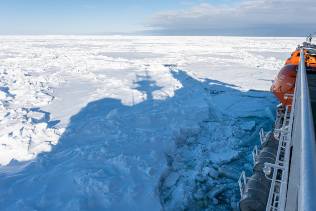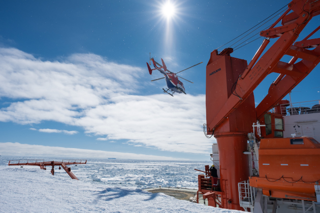 Navigating polar regions goes beyond the design of an icebreaker ship. In thick sea ice, helicopters are crucial for surveying the surrounding area and determining the best route for Polarstern. They can also quickly run temperature-critical and fragile supplies – such as seeds for EDEN ISS – from the ship to Neumayer while checking the long-term condition of the shelf ice.