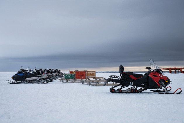 However, all other transit is done on the ice. Snowmobiles are the ideal option for shorter, lighter trips, while PistenBully plows are better for heavy-duty jobs like hauling, plowing or longer travel.