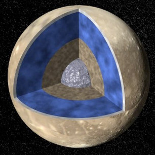 Model calculations of the internal structure and thermal evolution predict that there are global liquid oceans beneath the outer ice layers. Each of these oceans on Europa, Ganymede and Callisto would contain more water than all the oceans on Earth combined, according to typical model calculations.
