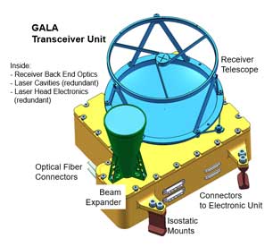 But back to GALA in 2009: the calculations for the required performance, especially the link budget, have been constantly refined. Countless technical parameters on optical and electrical assemblies had to be considered, including the ageing of the components during the years-long mission, the characteristics of the detector (a silicon photodiode), the algorithms of pulse detection and so on.