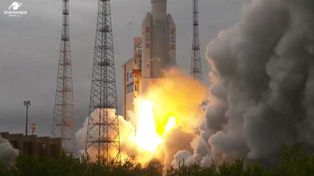 After a minor setback on Thursday due to a launch scrub, the Ariane 5 rocket carrying JUICE performed a flawless launch on Friday at 14:14 CEST (09:14 local time). The spacecraft is now in contact with Earth and its solar panels are deployed.