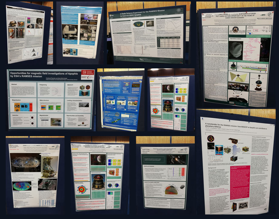 Other German proposals that were not featured in their own poster at this event included contributions to radio science (to determine Apophis' gravity field), a laser altimeter (to reconstruct the shape of Apophis and possible changes during the flyby), a Mössbauer spectrometer (a contact instrument to measure the composition of the surface material) and the Asteroid Framing Cameras (AFCs, one of the German contributions to the ESA Hera mission which enable navigation around Apophis and the scientific study of asteroids).