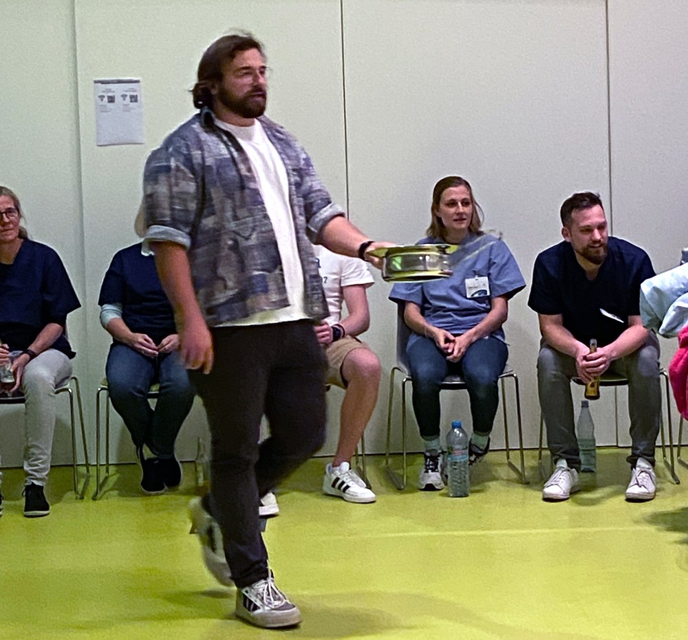 Based on the German TV show 'Schlag den Raab', three teams collected points by answering rounds of questions. The test subjects were put into teams according to their corridor on the ward, and each competed against the DLR team. There was much laughter when it came to guessing the weight of the bedpan. This essential aid for the bedridden was passed around and each team had to give their estimate – we should perhaps clarify that the bedpan was empty!