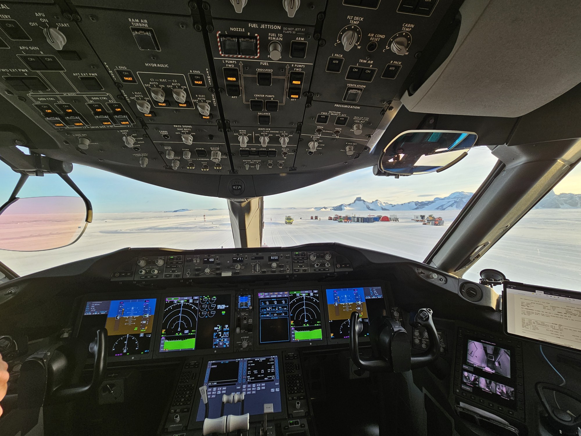 View from the flight deck of the Boeing 787 Dreamliner onto the Troll airfield