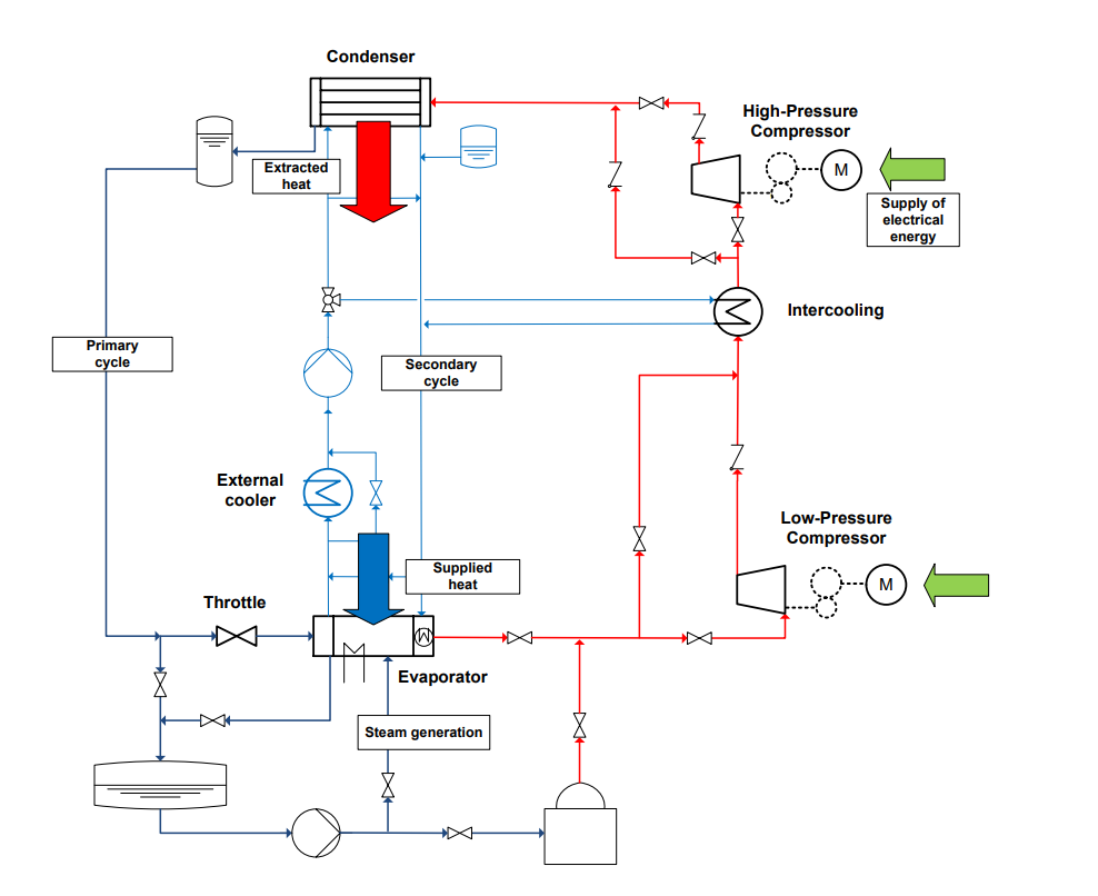 The Institute of Low-Carbon Industrial Processes is developing a high-temperature heat pump (HTWP) based on the Rankine process (working medium water/steam) and will set up the corresponding DLR test facility ZiRa for this purpose. For the development of this plant, the construction of the pilot plant ZiRa is necessary: