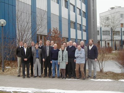 From left to right: Gunter Schreier, head of the central function Business Development and Marketing; Dr Michael Bittner, DFD head of Climate and Atmosphere Products; Hans Voß, assistant to the head of IMF; Dr Richard Bamler, head of IMF; Dr Harald Mehl, DFD head of Environment and Geoinformation; Dr Stefan Dech, head of DFD; Dr Peter Haschberger, IMF head of Experimental Methodologies; Dr Kurt Schmidt, DFD head of Information Technology; Susan Giegerich, assistant to the head of DFD; Dr Klaus Reiniger, DFD head of the International Ground Segment; Dr Robert Backhaus, DFD head of Working Groups, Cologne-Porz; Jörg Gredel, head of the central function Strategic Planning and Resources; Dr Dieter Bettac, DFD head of the National Ground Segment, Neustrelitz; Dr Tom Rother, IMF head of Atmosphere Processes; Prof. Manfred Schroeder, IMF head of Algorithms and Methodologies; Dr Andreas Neumann, IMF head of Optical Marine Remote Sensing.