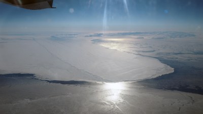 The Drygalski Ice Tongue at the coast of Victoria Land, seen from above when approaching McMurdo.