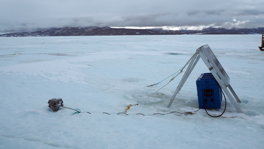 Today the difference between low and high tide is 1.2m and the processes that we are interested in are most pronounced. While this is a very busy time for the installed field station we are filling gaps in our ice thickness maps.