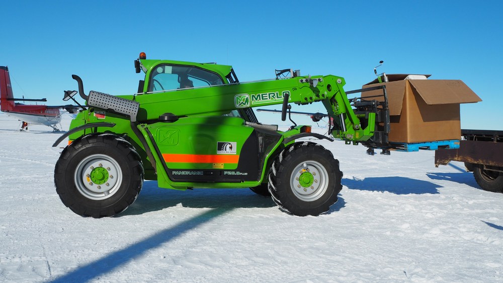 After they landed the pilot George and Alex used their bare strength and juggled all our cargo out onto the ice.