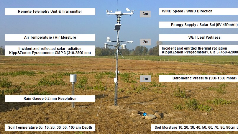 Currently, environmental data are being collected with the help of an automated measurement network (agrometeorological, soil and plant-morphology parameters), lysimeter hexagons (hydrological parameters), specific measurement campaigns, and local farmers (agrotechnical parameters).