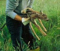 Deer leave their fawns well camouflaged in the tall grass for the first week of their lives. It is precisely at this time that farmers carry out their spring mowing. When a tractor approaches a fawn, it doesn't run away - it falls to the ground, completely motionless. The consequences are fatal: in the old German states alone, it is estimated that around 60,000 fawns are killed each year during spring mowing. A total of 420,000 wild animals (hares, ground-nesting birds) are killed or mutilated.