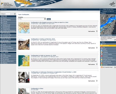 Ever since 2003 the ZKI offers to users via its web-portal fast, cost-free, and public access to its products. Numerous relief organizations, decision makers and situation rooms have made use of the opportunity to download overall maps, damage maps, and reference material, derived and cartographically pre-processed from satellite- or aerial imagery, and to integrate this information into their aid- or prevention measures. Since 2006 the portal has also granted free access to data from the ZKI-fire-service, offering maps, satellite images and statistics about recent fire events in Europe, derived by automatic data processing from MODIS data, received at DLR.