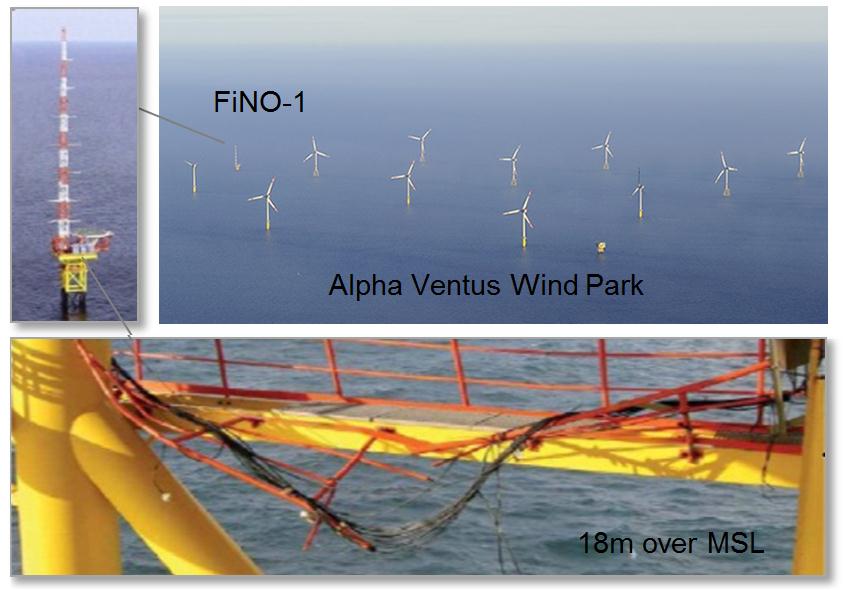 The EOC research team is thus investigating how warning of such extreme waves can be given. It simulated Storm Britta of November 2006 on a computer. At that time extreme waves had damaged the 18 meter high deck of the FiNO-1 research platform. For the simulation in a numeric spectral wave model the wind fields from a conventional atmospheric model were modified according to the measurements deduced from the SAR data by superimposing the gusts into coarse input wind field. The simulations showed that a single “open cell” caused on average a local increase in wave height of about three meters. But a cluster of cells led to a local increase up to six meters. In the simulation extreme waves were formed most commonly of a wave length of 400 meters, in groups, and only in a narrow strip about two-and-a-half kilometers wide. Locally, such as on a platform, they can only be seen as the cell passes by within a short time window of about 10 to 20 minutes. The results of the simulation precisely matched the observations made during Storm Britta.