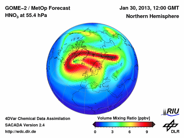 Impressing structures can be observed these days when looking at the global stratospheric ozone distribution.