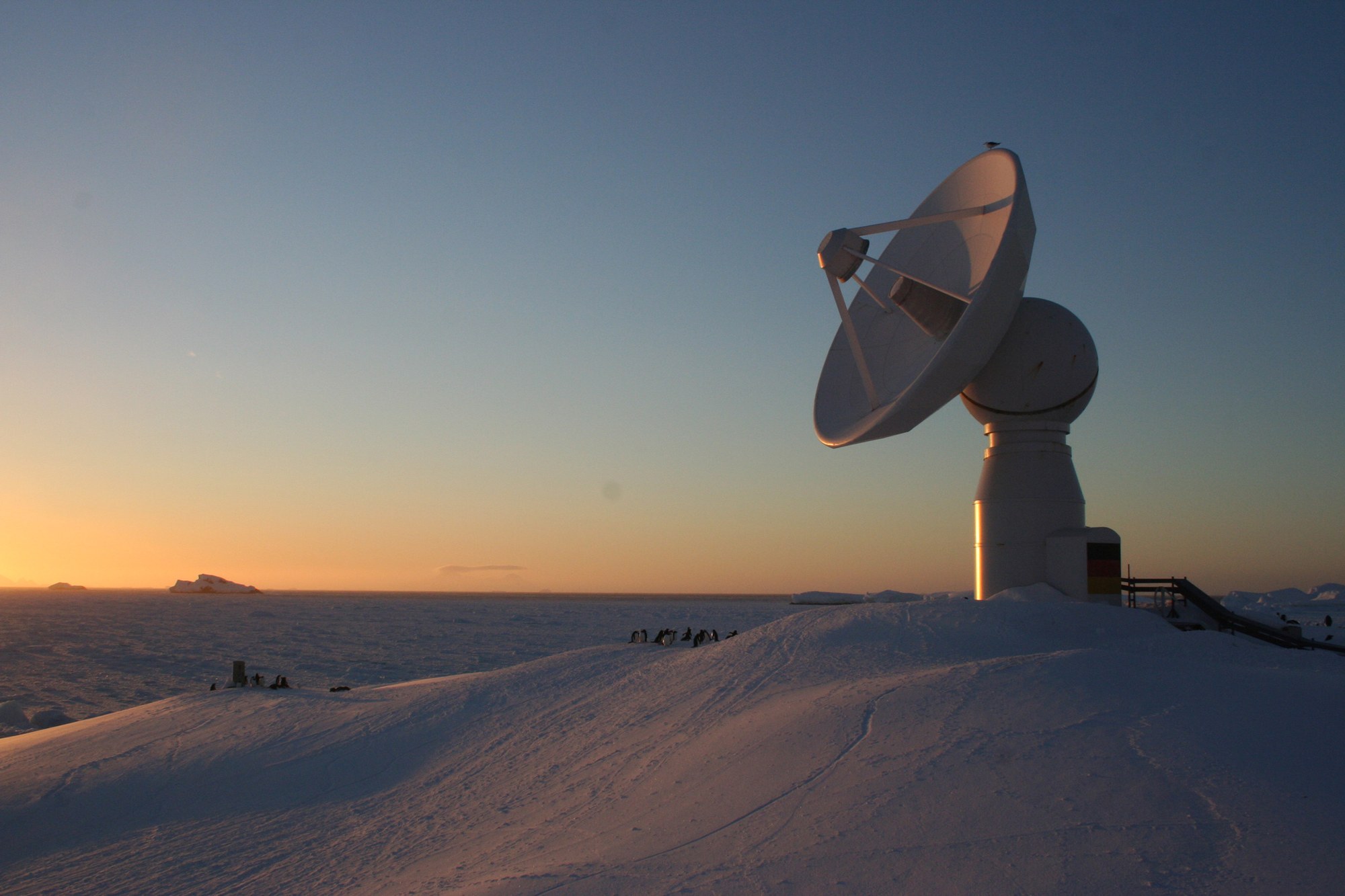 The receiving antenna of DLR’s German Antarctic Receiving Station GARS O’Higgins on the Antarctic Peninsula (63.3°S, 57.9°W)