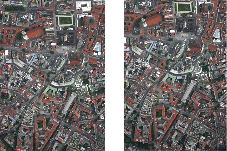 So that the data processing always keeps up with the on-board cameras’ recording speed, the resolution of the elevation model is matched to the terrain. For example, the ground resolution is reduced for areas with large differences in relief, which keeps the computing time down. This was the challenge facing the team in the Neuschwanstein Castle test area, where the elevation varies by 1000 metres. Despite the high computational requirements, the 3K camera system could generate a terrain model with one metre resolution in synchrony with the pace of recording.